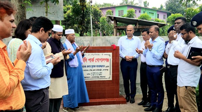 Deputy Commissioner and learned District Magistrate (Joint Secretary) Muhammad Kamruzzaman inaugurated the construction of DC Park in Gopalganj with prayers and supplications. After unveiling the inaugural plaque at 11:30 am on Sunday (June 1), he inaugurated the construction work of Gopalganj DC Park after offering prayers and supplications. The prayers and supplications were led by the Pesh Imam of Gopalganj Municipal Cemetery and Jama Masjid, Md. Al-Amin. Later, Deputy Commissioner Muhammad Kamruzzaman personally planted a Bakul tree sapling at the under-construction DC Park. Earlier, the District Administrator said in a meeting with media personnel that there is no proper system for walking peacefully in this busy city, especially for those who are diabetic. Apart from that, there are no other entertainment facilities for the little ones except Sheikh Russell Children’s Park. Therefore, if a DC Park is built on the rescued government private land, people will be able to enjoy a little peace by coming close to nature with a variety of trees and shrubs. Work has already been distributed to multiple departments, including the Gopalganj Municipality, to implement this project. Hopefully, this DC Park will play a helpful role in providing entertainment to the residents of Gopalganj in the near future. At that time, Gopalganj Municipality Administrator and Local Government Department Deputy Director (Deputy Secretary) Biswajit Kumar Pal, Additional Deputy Commissioner (General) Md. Golam Kabir, Additional Superintendent of Police (Finance and Administration) Muhammad Sarwar Hossain, Executive Engineer of Gopalganj Roads and Highways Department Muhammad Azharul Islam, Deputy Director of Gopalganj Agricultural Extension Department A. Kader Sardar, Sadar Upazila Executive Officer M. Rakibul Hasan, Assistant Superintendent of Police Sohel Rana, Assistant Commissioner (Land) Babli Shabnam, Assistant Commissioner Md. Ataur Rahman, Municipality Executive Officer S. M. Rakibul Islam, Executive Engineer Md. Mehedi Hasan, Personal Assistant to the Municipal Administrator Mahfuzur Rahman Lablu, and media personnel working in various electronic and print media in the district were present. The Deputy Commissioner then briefed the media personnel about the facilities and rides that will be available at the DC Park under construction from start to finish, and the model in which it is being built. In addition, there will be demos of two products recognized as GI products produced in Gopalganj at this DC Park.