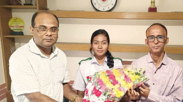 Sakhipur (Tangail) Correspondent Sakhipur Press Club felicitated Rupa, a footballer from the SAFF Under-20 Women’s Football Champion team, in Sakhipur, Tangail. The reception was held at the Press Club auditorium