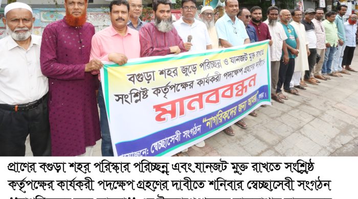 A human chain was observed in Satmatha of the city on Saturday demanding effective steps by the relevant authorities to keep the vital Bogura city clean and free from traffic