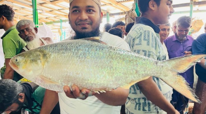 A king hilsa weighing 2.5 kg was sold for 14,000 taka in Mahipur, Patuakhali. The fish was sold at the Faisal Fish Market of the Mahipur Fisheries on Thursday (September