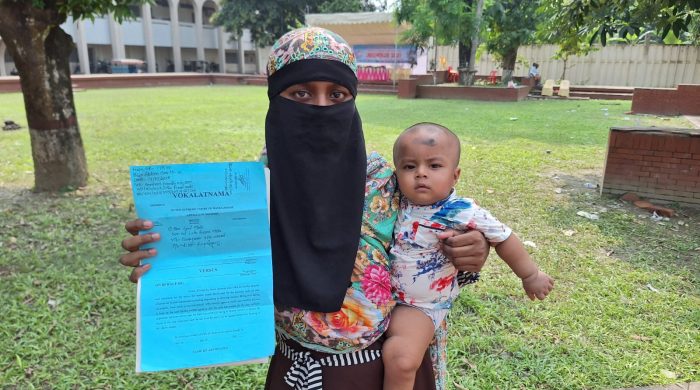 Sonali Begum, wife of van driver Abu Sayeed Molla (23), who is being held as an unknown accused (remanded accused) in a case filed in Gopalganj on July 16 in