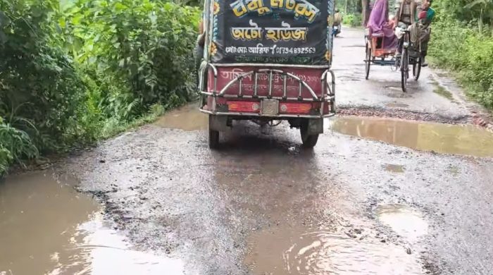 The Mahasthan-Pirgachha regional road is a death trap for locals. This road is the only hope for the people of the agriculture-based hamlet of Lahiripara union in Sadar. But due