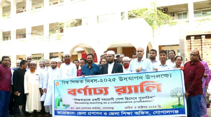 World Teachers’ Day-2025 was celebrated in Gopalganj with a colorful procession and discussion meeting. This day was celebrated jointly by the Gopalganj District Administration and the District Education Office. On