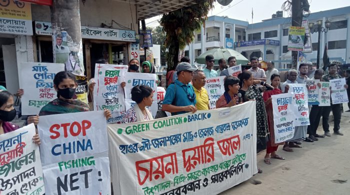 A demand has been raised in Netrokona to immediately ban Chinese gillnets to save the local fish and aquatic life of the haor. A human chain was held calling for