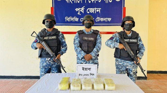 The Bangladesh Coast Guard has seized 50,000 pieces of yaba tablets worth 2 crore 50 lakh taka in a raid in Teknaf, Cox’s Bazar. On Wednesday (October 29, 2025) afternoon,