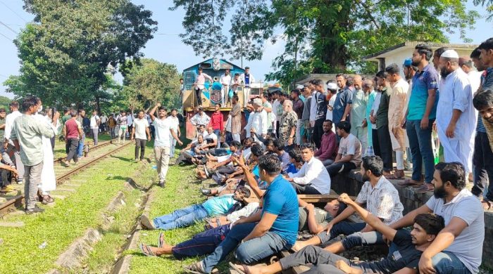 Hiron supporters blocked the Dhaka-bound inter-city Haor Express train at Gouripur Junction on Tuesday (November 4/25) demanding cancellation of nomination of paddy sheesh in Gouripur constituency, Mymensingh-3. The leaders and