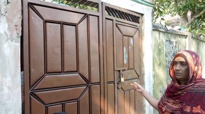 An allegation has been made against a woman named Rina Akhtar, a moneylender, for locking up her house in Mohanganj Municipality of the district, demanding interest money. Shafiqul Islam, a
