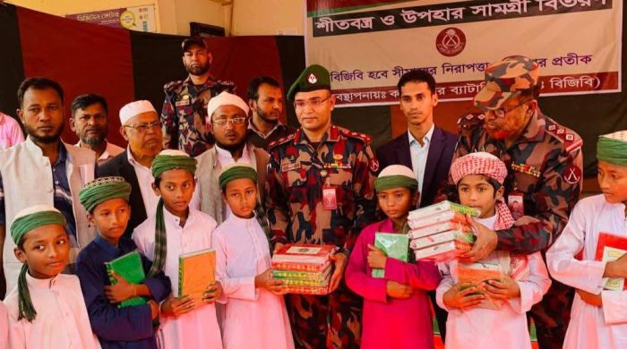 34 BGB Cox’s Bazar distributed winter clothes among the cold-stricken and helpless people in the Bangladesh-Myanmar border area of Naikhongchari upazila of Bandarban. This winter clothes distribution program was conducted