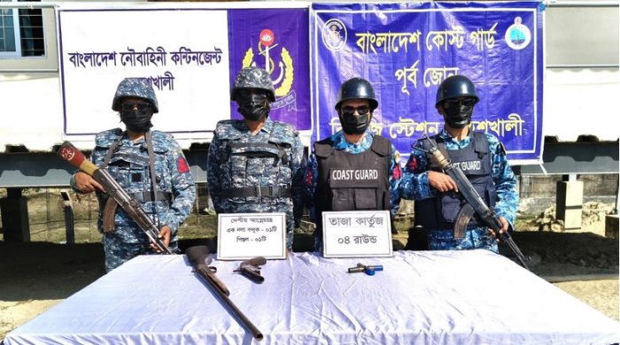 Two local firearms and four rounds of live cartridges have been recovered in a joint operation by the Bangladesh Coast Guard and Navy in Maheshkhali, Cox’s Bazar. On Sunday (January