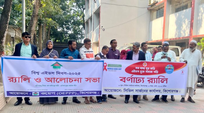 A colorful rally and discussion meeting was organized by the Kishoreganj Civil Surgeon’s Office on the occasion of World AIDS Day. On Monday, December 1, 2025, at 11 am, the