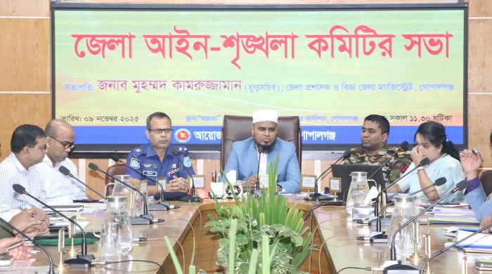 The monthly meeting of the District Law and Order Committee was held in Gopalganj in November / 2025. The meeting, organized by the Gopalganj District Administration on Sunday (November 9)