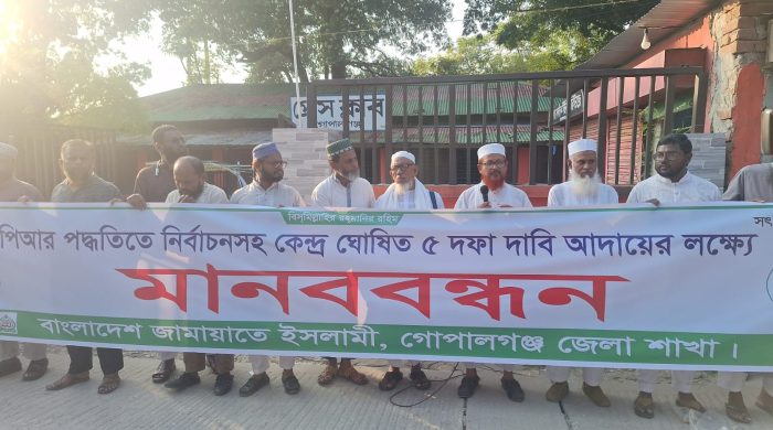 A human chain program has been organized by the Bangladesh Jamaat-e-Islami Gopalganj district branch to achieve 5-point logical demands, including the next national parliamentary election through the PR method. As