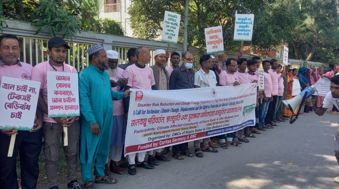 A human chain demanding sustainable solutions against the adverse effects of climate change, damage, migration and social insecurity was held in Koyra. it was held on Wednesday (November 19) 11am.Thana