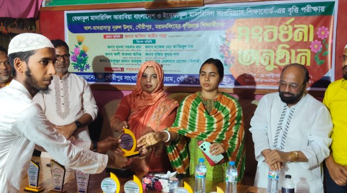 A reception was organized by the Gouripur Journalist Unity Forum for the scholarship-winning students of Befaqul Madarisil Arabia Bangladesh and Ittefaqul Madarisil Qawmiyah Education Board. On Saturday afternoon, October 11,