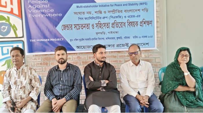 A meeting was held on gender awareness and violence prevention training in Fulchhari, Gaibandha. On Thursday morning, a day-long gender awareness and violence prevention training organized by the Peace Facilitator