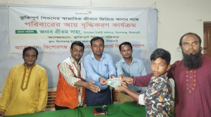 In order to prevent child labor, prevent schooling and direct them to school, income-enhancing training, technical materials and money have been distributed to 84 children’s family members in Kishoreganj, Nilphamari.