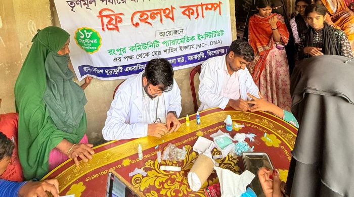 Free medical service has been provided to 350 poor people of remote villages in Nilphamari Kishoreganj on the initiative of a student. The free medical camp was held on Thursday